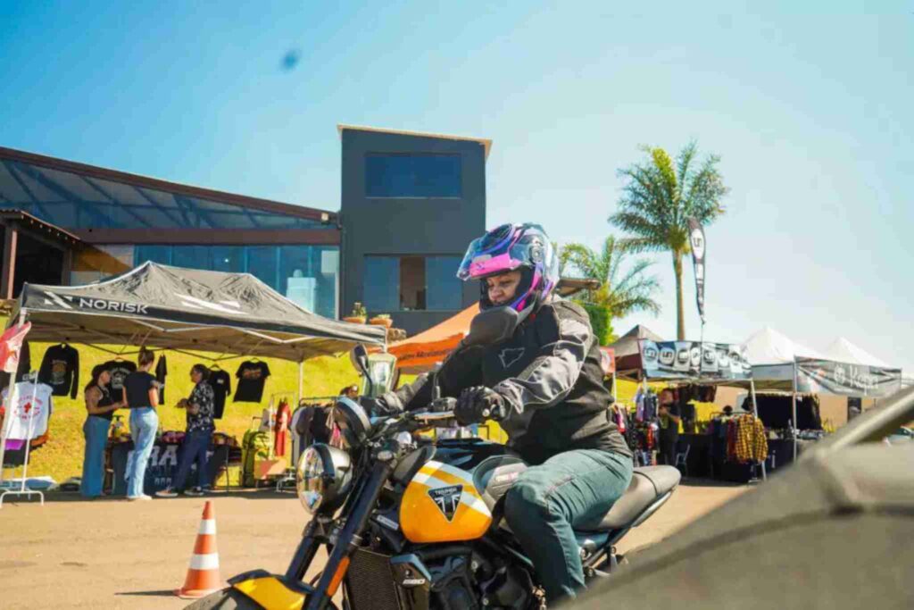 As participantes podem testar diferentes modelos, comparar ergonomia, potência e comportamento das motos. Essa experiência prática ajuda na escolha de um modelo e melhora a confiança na pilotagem.
