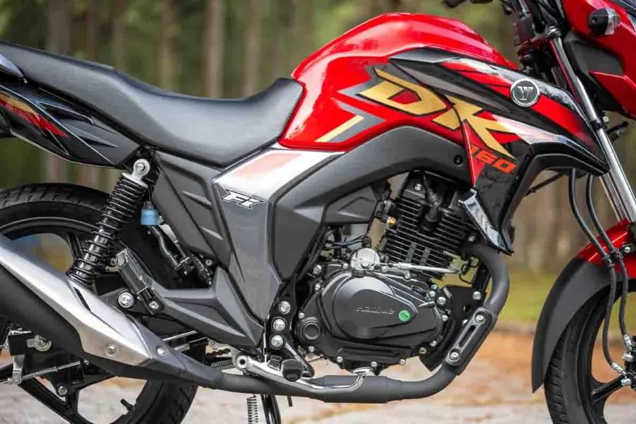 • Conforto: A Haojue DK 160 ganha pelo acabamento premium e suspensão macia, ideal para longas horas de uso.