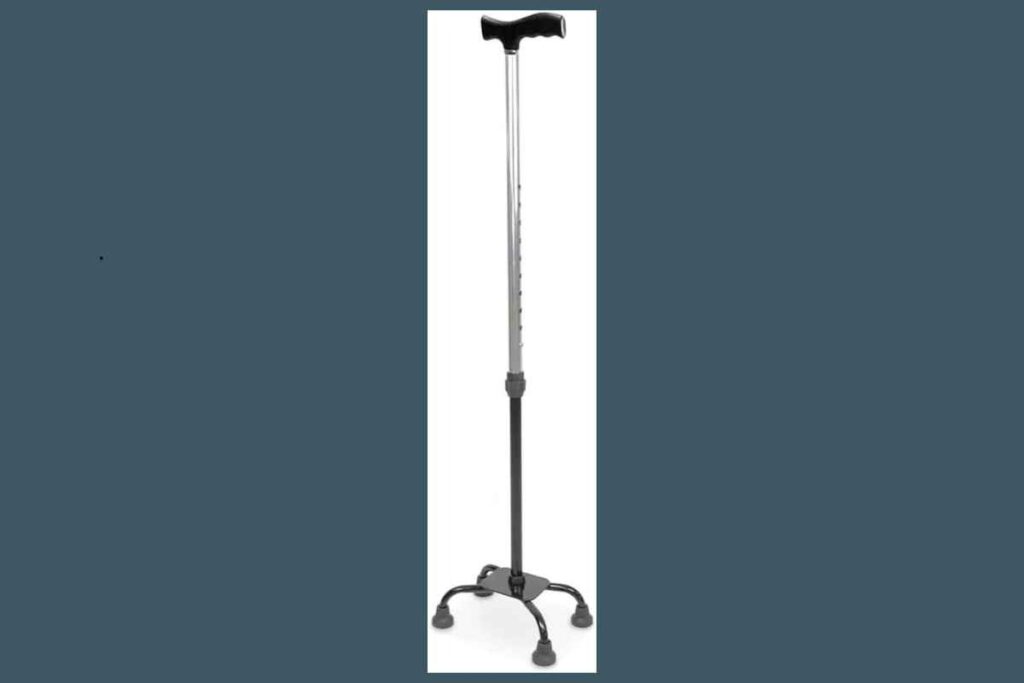 Também conhecida como bengala quadripé, oferece mais firmeza por conta da base larga.