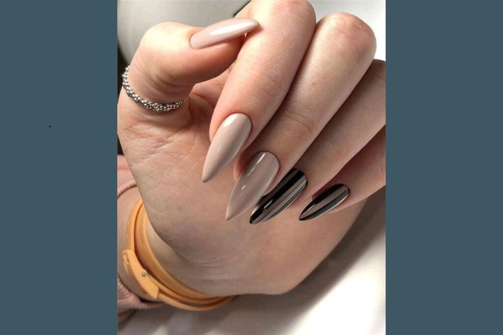 A combinação de marrom e nude traz um toque moderno e ousado. O contraste das cores cria um efeito visual impactante e cheio de estilo. As unhas marrom com detalhes metálicos valorizam a sofisticação e funcionam bem em ocasiões especiais.