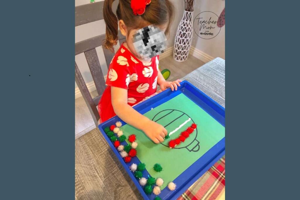 6. Enfeite de Natal com pompons em bandeja sensorial