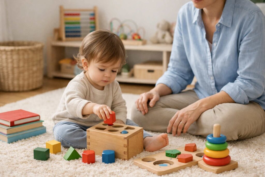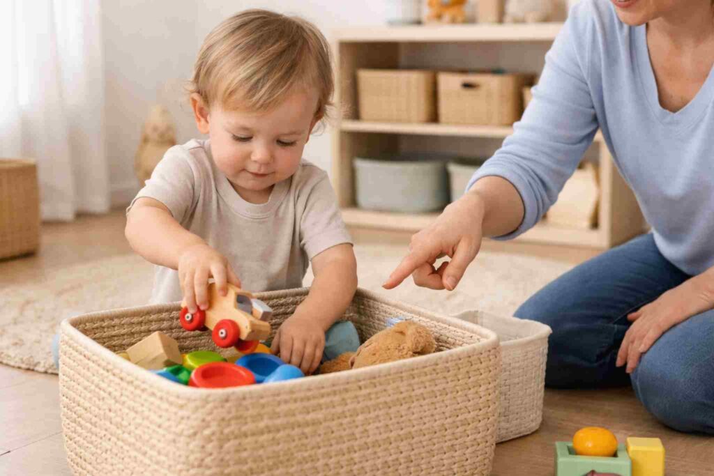 Guardar os brinquedos ajuda a criança a entender que cada objeto tem seu lugar e que ela faz parte da organização do ambiente. Essa prática reforça a responsabilidade desde cedo, sem cobranças excessivas.
