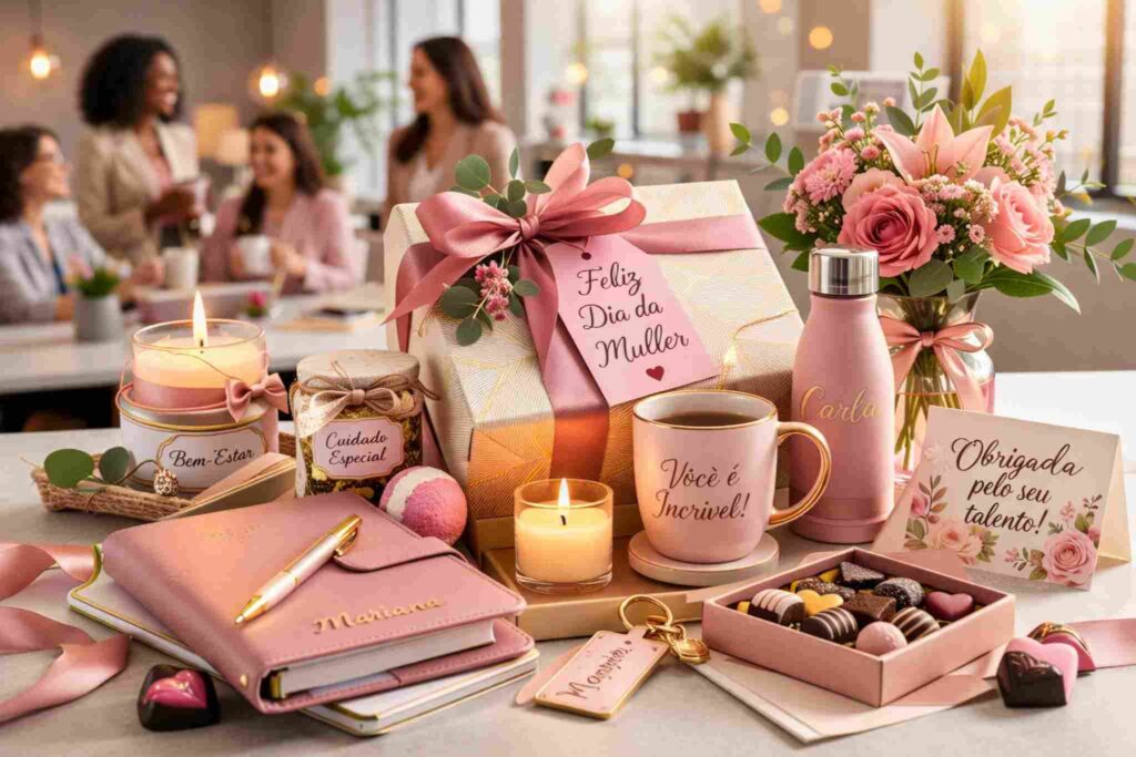 A escolha deve considerar o perfil das colaboradoras e o posicionamento da empresa. Evite itens genéricos e sem utilidade prática.