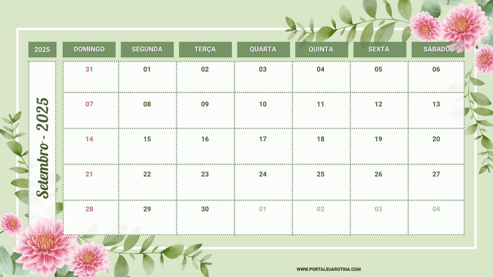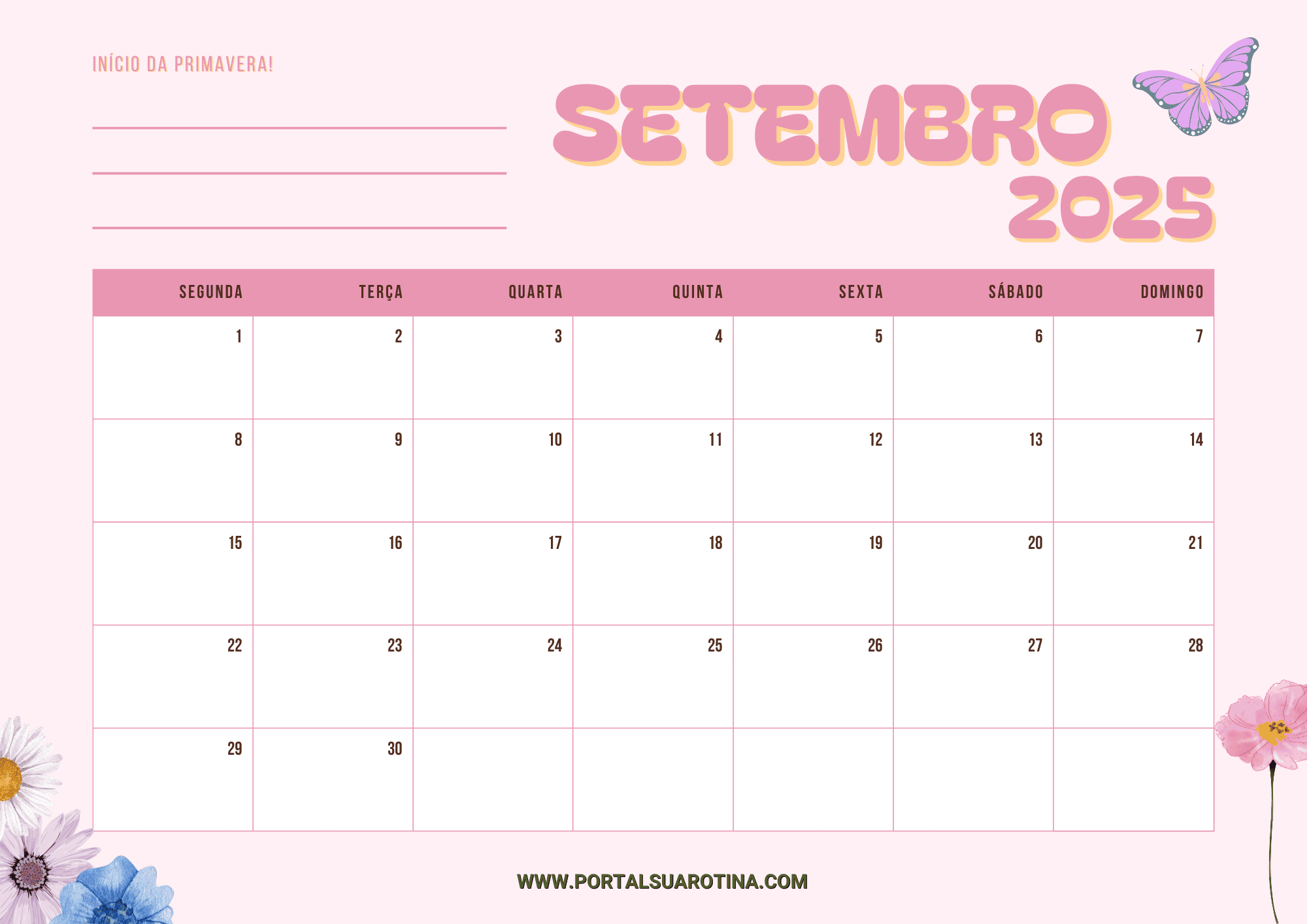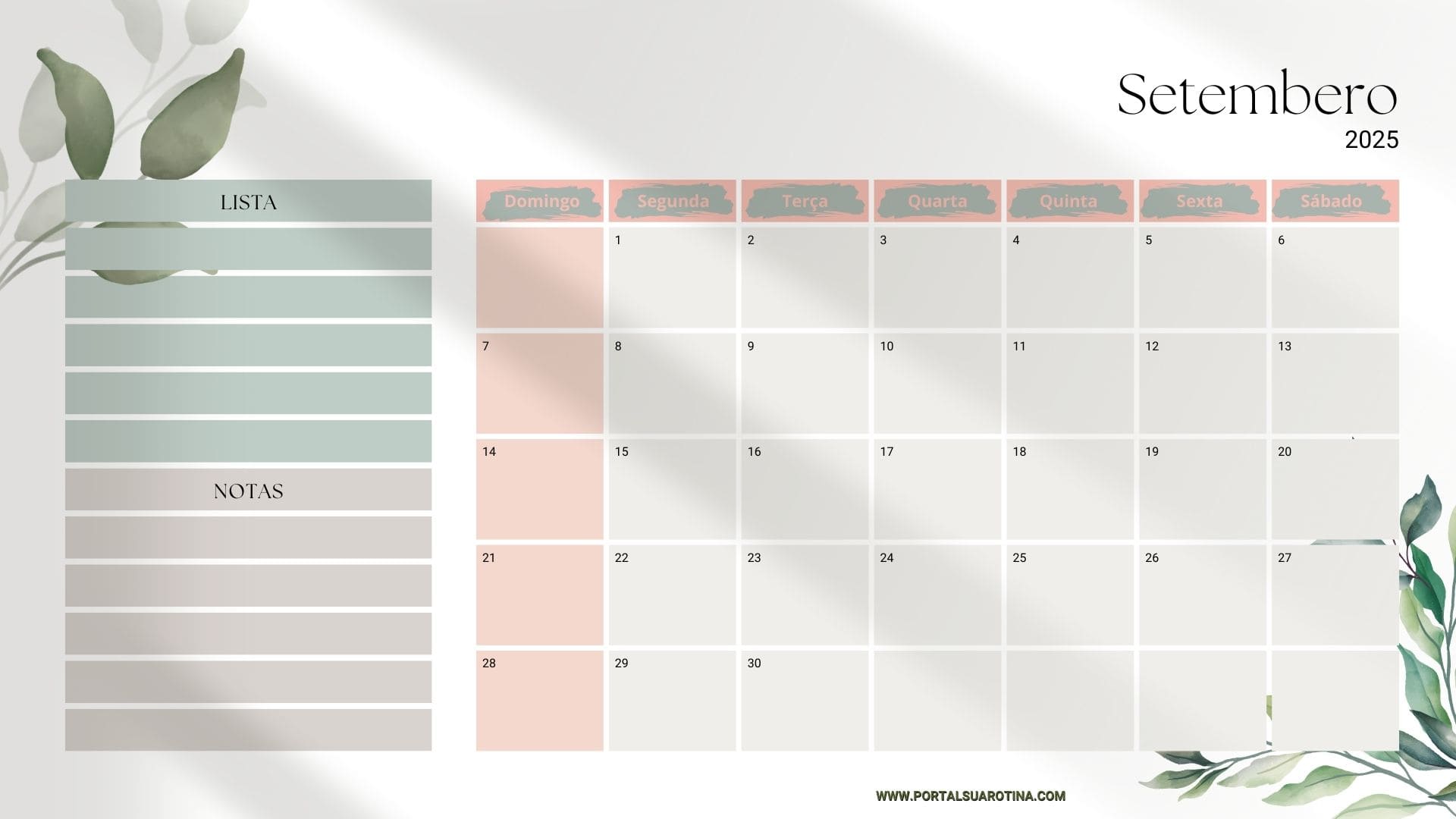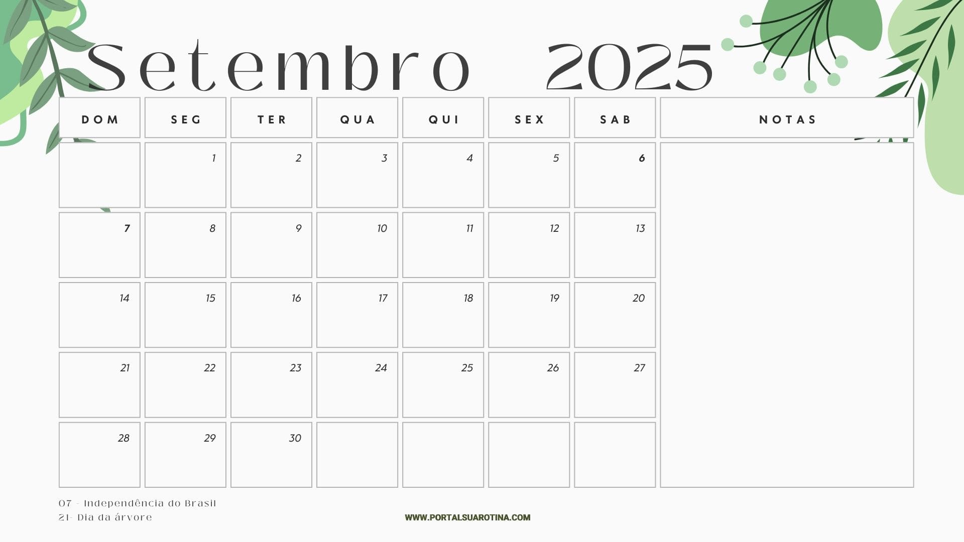 Com um calendário setembro para imprimir, você consegue separar facilmente obrigações como: