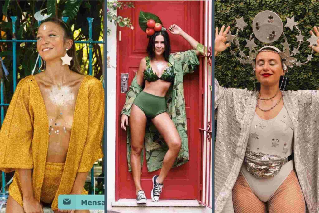 As fantasias industrializadas perdem espaço para produções manuais, customizações e reaproveitamento de peças. O look deixa de ser descartável e passa a refletir estilo próprio, humor e até posicionamento criativo.