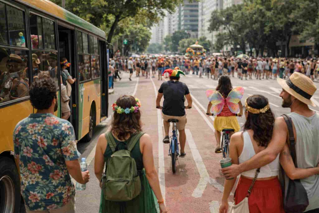 O deslocamento é outro ponto crítico no Carnaval. Sempre que possível, priorize transporte público, caronas compartilhadas ou deslocamentos a pé.