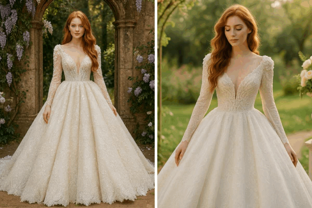 Escolher o vestido de noiva estilo princesa é transformar um sonho em realidade. Com saia volumosa, cintura marcada e detalhes delicados, ele é a tradução perfeita do romantismo.
