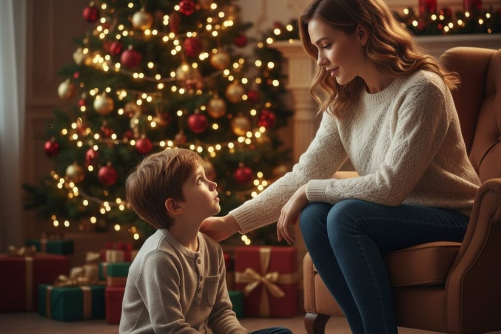 Deixe que ela expresse seus sentimentos e responda às perguntas com sinceridade. Mostre que está tudo bem ficar um pouco desapontada, mas que isso não muda o amor e a magia do Natal em família.