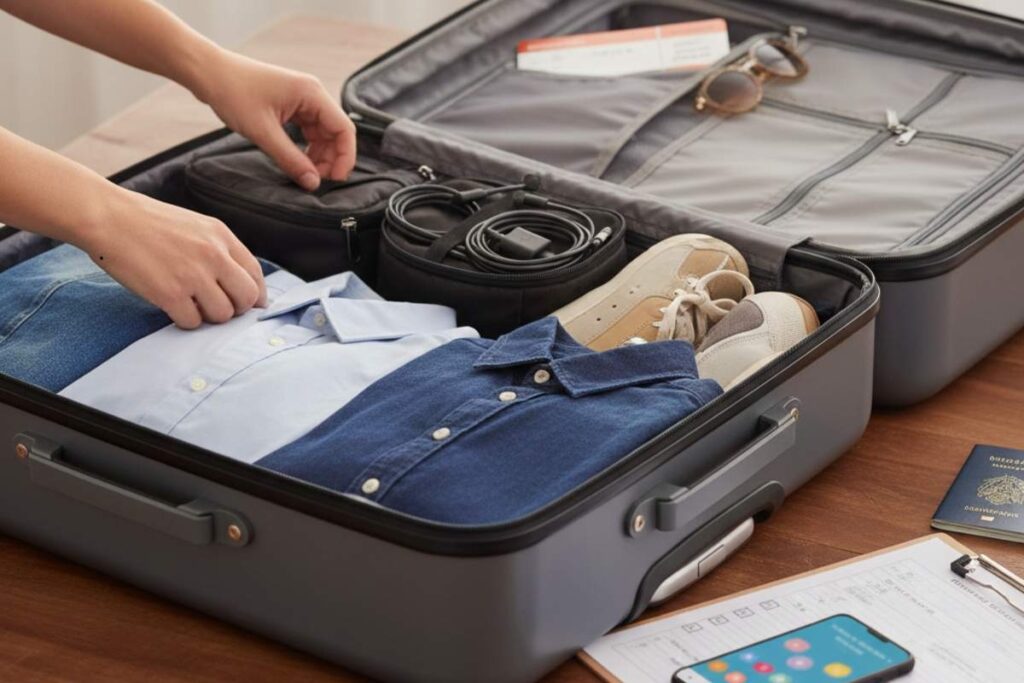 Fazer uma lista antes ajuda a visualizar tudo o que precisa ser levado. Anote roupas, eletrônicos, acessórios e documentos. Essa revisão impede que itens essenciais fiquem de fora.