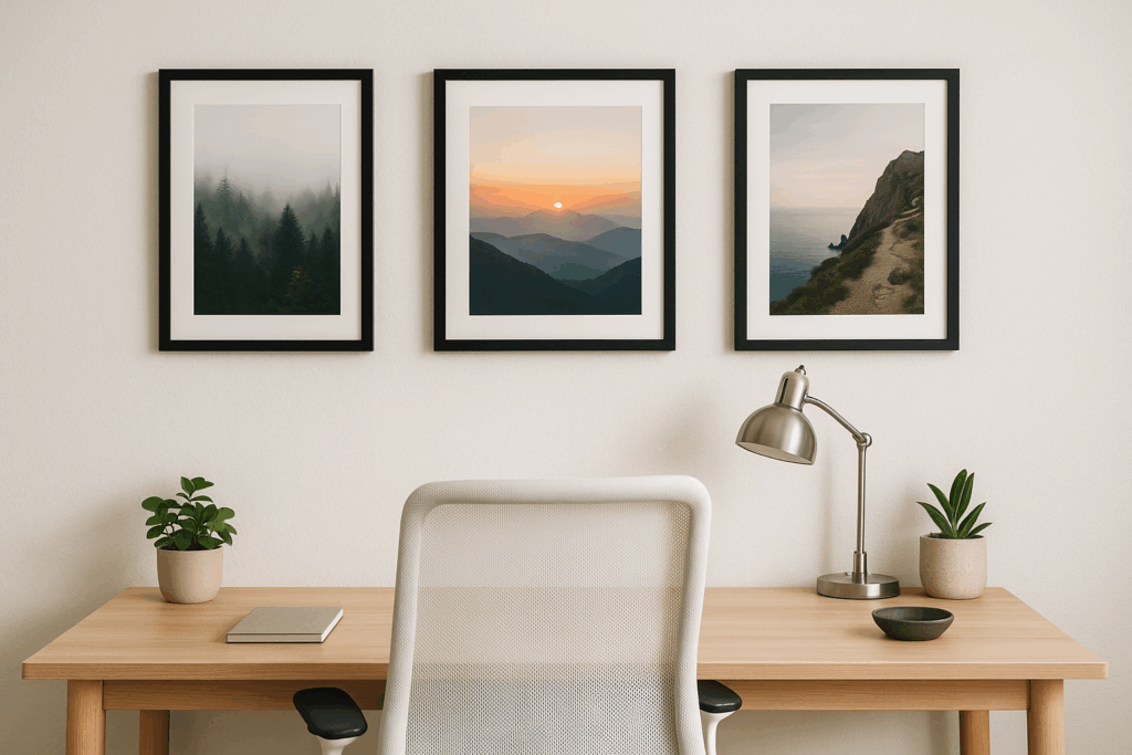 Já em escritórios ou home office, fotos inspiradoras ou quadros com frases motivacionais estimulam a criatividade e o foco, deixando o espaço mais acolhedor e personalizado.