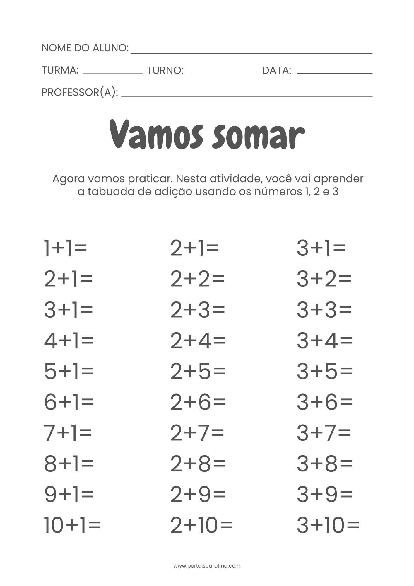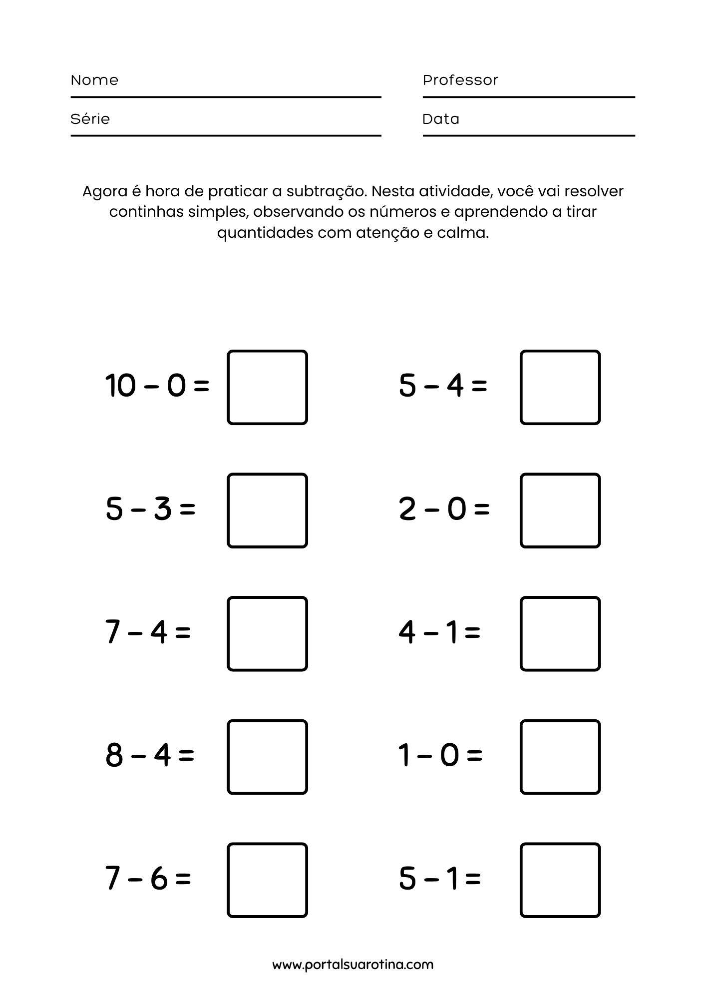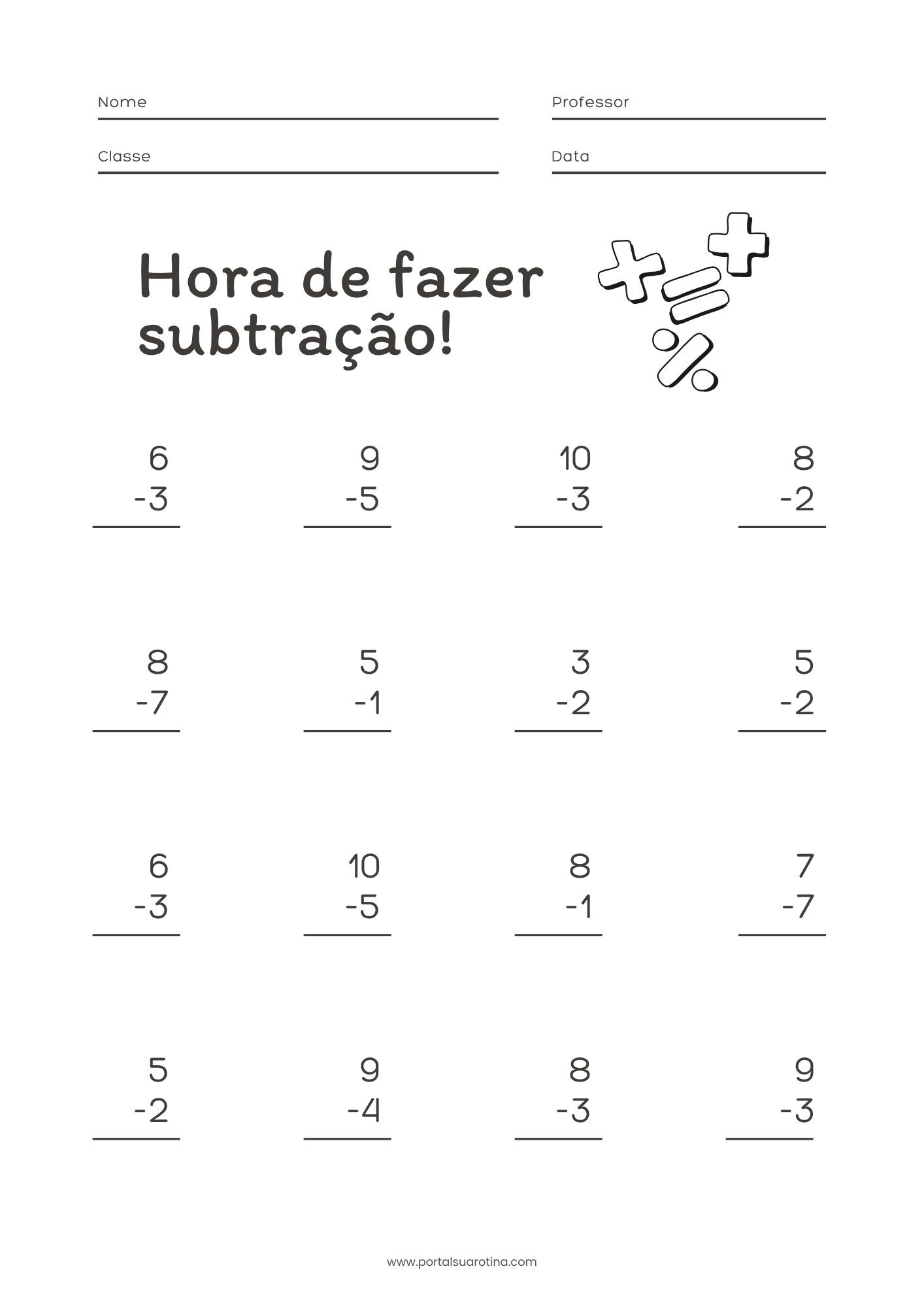 Dicas para usar continhas de adição e subtração para imprimir