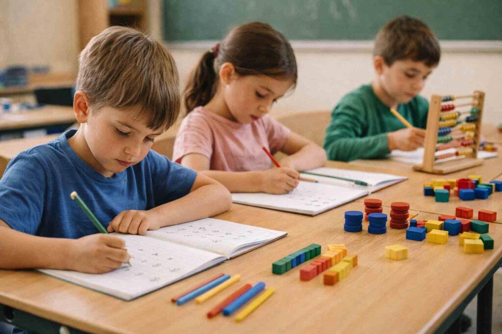 Nessa etapa, o foco não está na rapidez, mas na compreensão. Atividades simples, com números pequenos e apoio visual, facilitam o entendimento e evitam bloqueios futuros com a matemática.