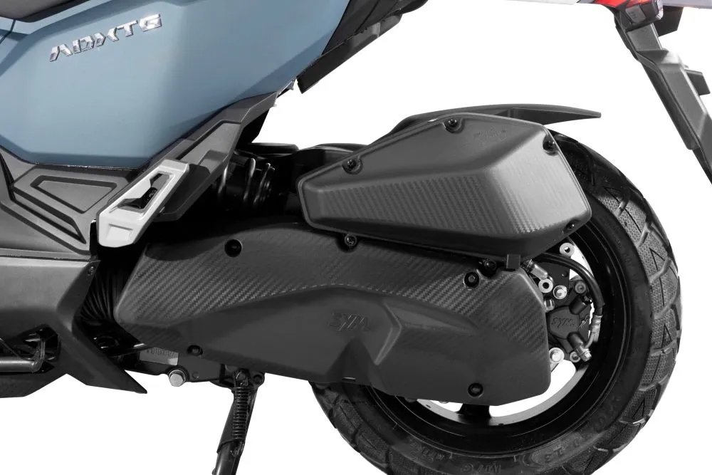 Na prática, o scooter mantém conforto para o dia a dia, mas ganha características que ampliam o uso fora do asfalto, como pneus mistos e suspensão traseira com monoamortecedor.