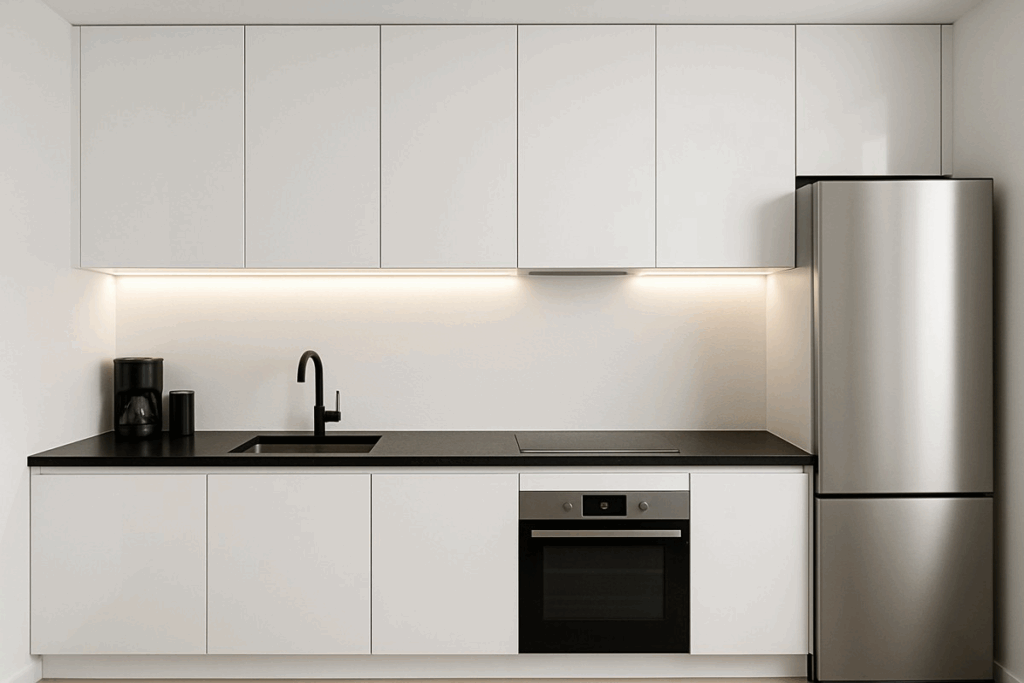 1. Cozinha minimalista com contraste branco