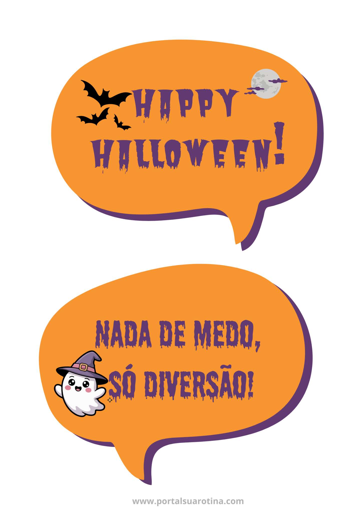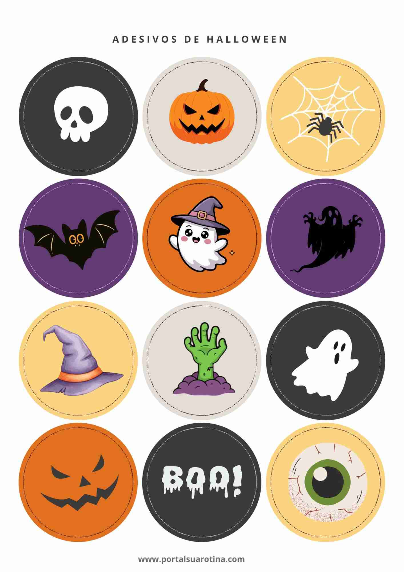 Há versões com abóboras sorridentes, fantasminhas simpáticos, morcegos engraçados e plaquinhas com frases divertidas. Basta baixar, imprimir e colorir para deixar sua casa no clima da festa.