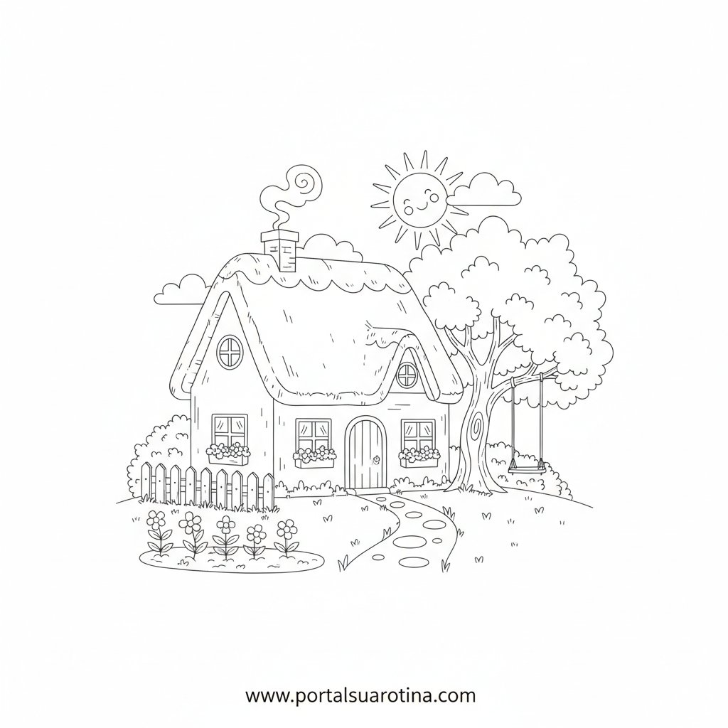 O desenho de casa para colorir também pode ser usado como ferramenta pedagógica. Professores e pais podem aproveitar essa atividade para ensinar conceitos importantes de forma divertida.