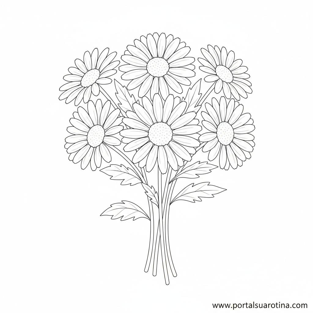 Aqui é o momento de escolher o seu modelo favorito. A ideia é que você encontre versões diferentes de desenho de flores para colorir, desde simples margaridas até mandalas florais detalhadas.