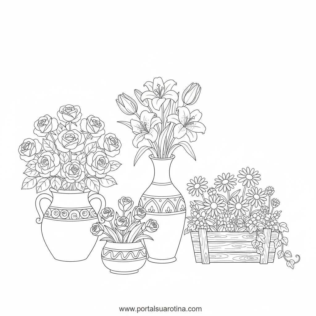 As flores estão entre os desenhos mais versáteis e inspiradores para colorir. Elas permitem explorar tonalidades, misturar cores e desenvolver a criatividade de forma livre.