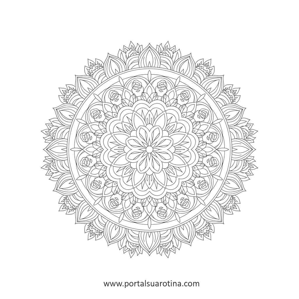 - Para adultos: escolha mandalas florais ou composições com flores complexas.