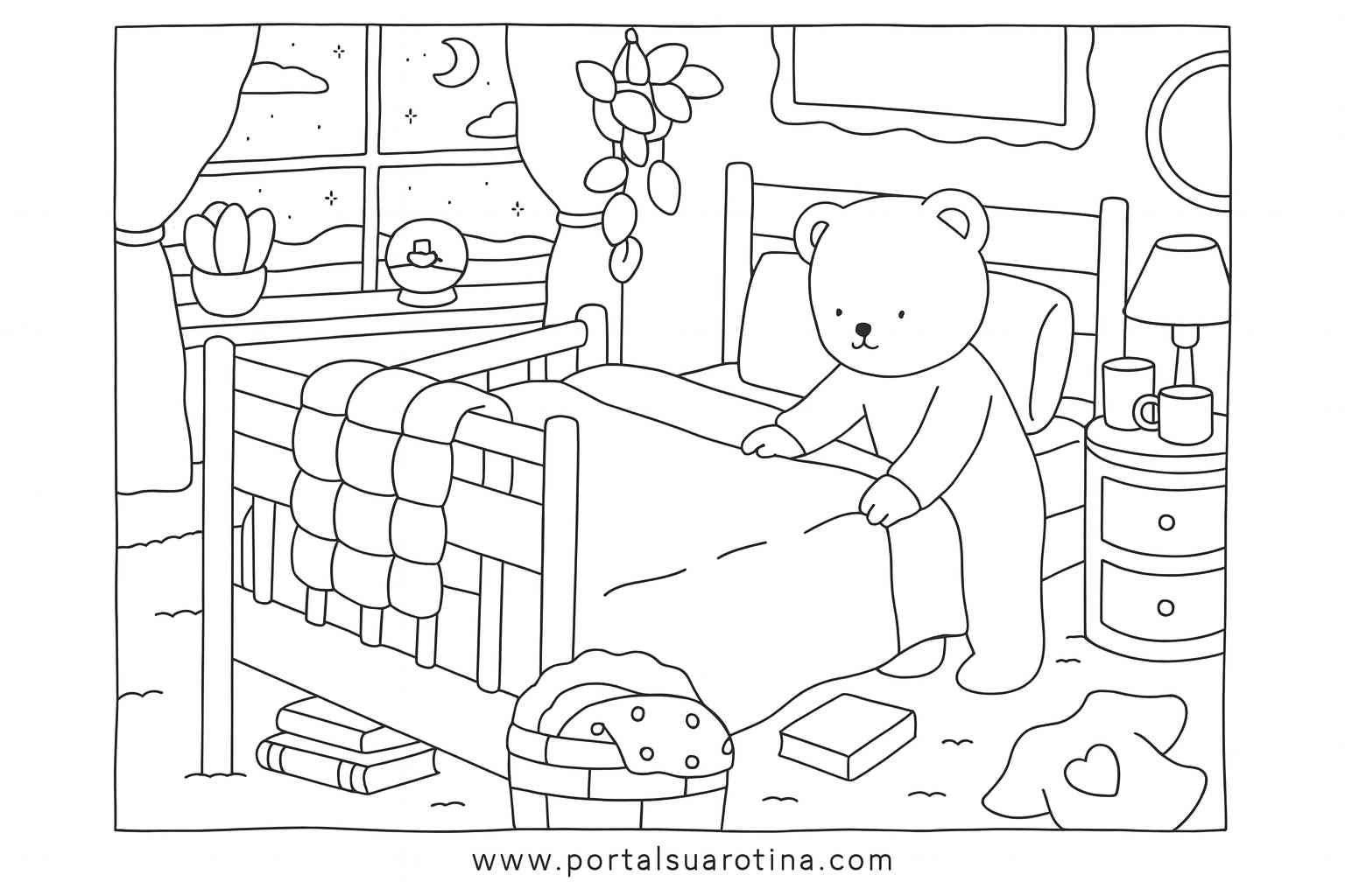 Os desenhos do Bobbie Goods possuem cenários ricos em detalhes que incentivam a observação e a escolha das cores.