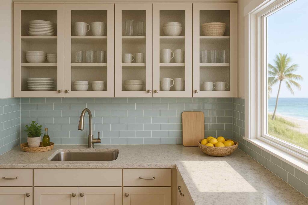 Essas soluções combinam estética e utilidade, criando uma cozinha que reflete o espírito descontraído da praia, mas continua prática e funcional para o uso diário.