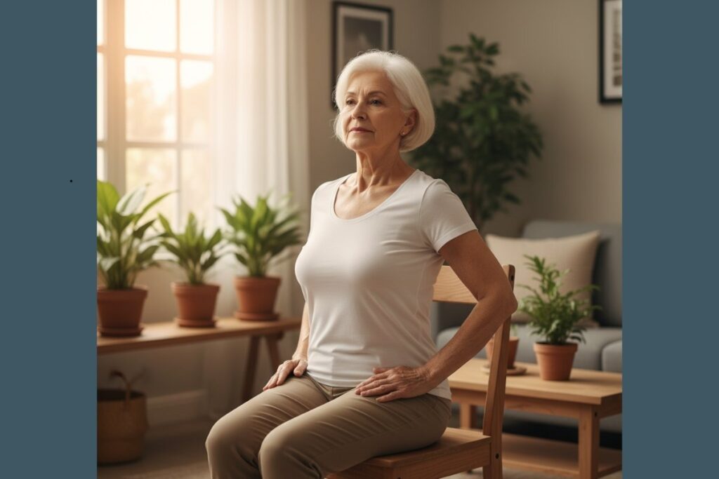 Respirar bem melhora oxigenação, reduz ansiedade e aumenta a consciência corporal. Muitos idosos sentem alívio imediato após alguns minutos de respiração profunda.