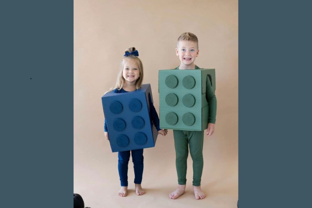 6- Fantasia de Lego com caixas de papelão