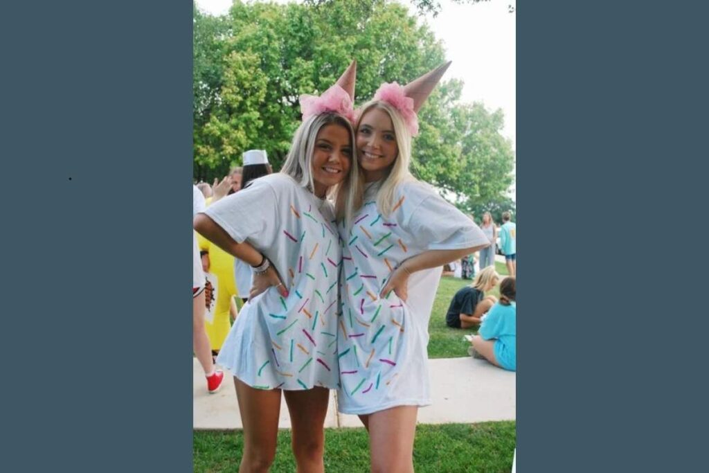 Ideal para ir acompanhado. Dá para fazer com camisetas largas, tinta para tecido ou canetão, desenhando o “sorvete”, e completar com tiaras de casquinha.