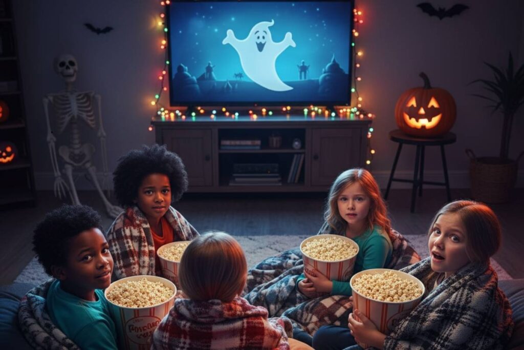 Crianças assistindo filme de Halloween