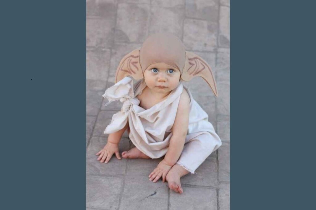 Essa fantasia de carnaval infantil criativa do Dobby, personagem do universo Harry Potter, é simples, divertida e cheia de significado. O visual é marcado pela roupa clara com amarração leve e pelas orelhas grandes, que identificam facilmente o elfo doméstico.