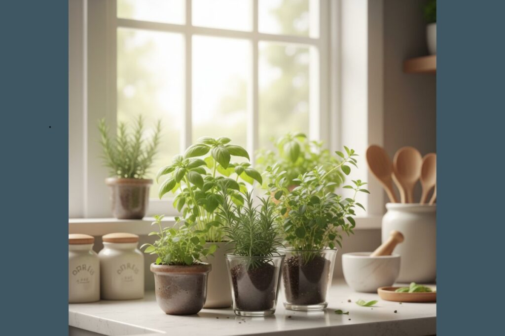 Para quem quer praticidade, vale reservar um cantinho perto da janela. Pequenos vasos com manjericão, alecrim e orégano deixam o ambiente bonito e perfumado.