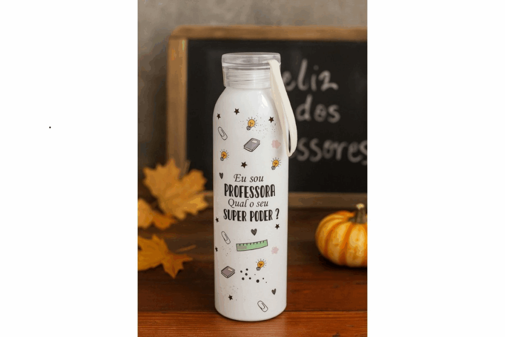 As garrafas reutilizáveis personalizadas estão entre os presentes mais úteis. Além de incentivar a sustentabilidade, ajudam o professor a se manter hidratado durante as aulas.