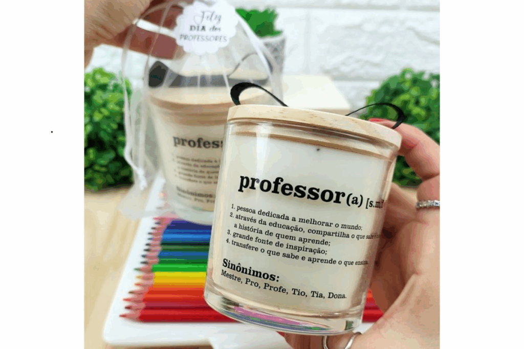 O toque especial está na mensagem: frases como “professor(a): pessoa dedicada a melhorar o mundo” deixam o presente ainda mais significativo.