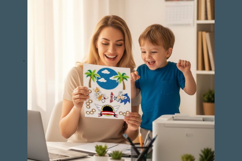 - Para crianças pequenas: versões coloridas e animadas, com Sonic e Tails sorridentes.