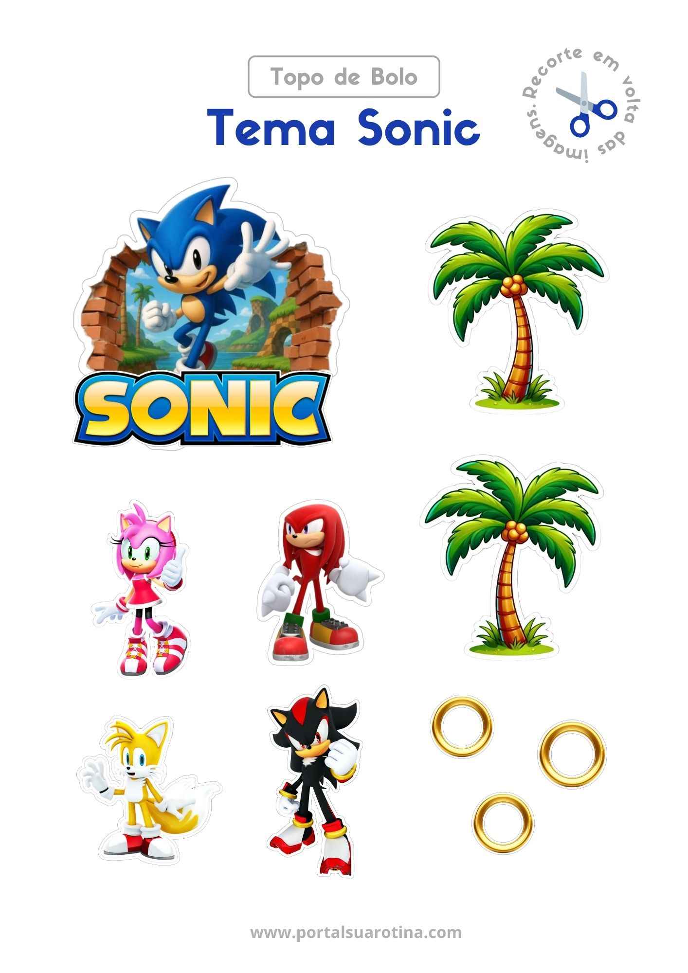 Aqui é o espaço perfeito para você escolher seus modelos favoritos. Nesta seção, você irá encontrar diferentes opções de topo de bolo Sonic para baixar e imprimir.