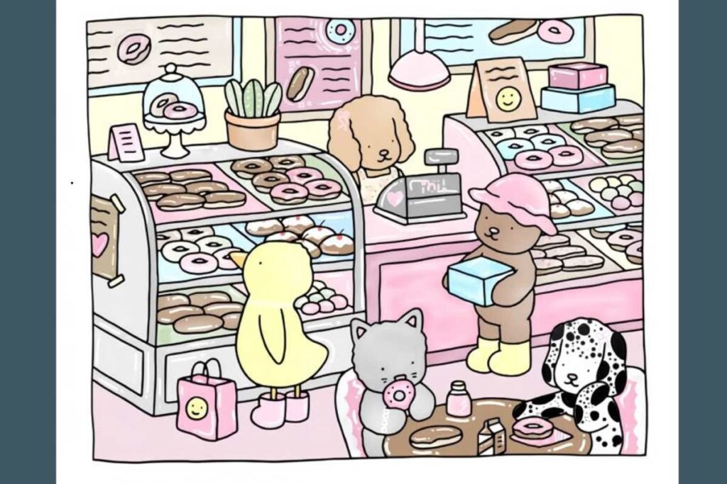 O universo de Bobbie Goods é repleto de doçura e aconchego. Suas cenas, muitas vezes com elementos como xícaras, flores, frutas, casas e personagens adoráveis pedem cores que transmitam leveza.