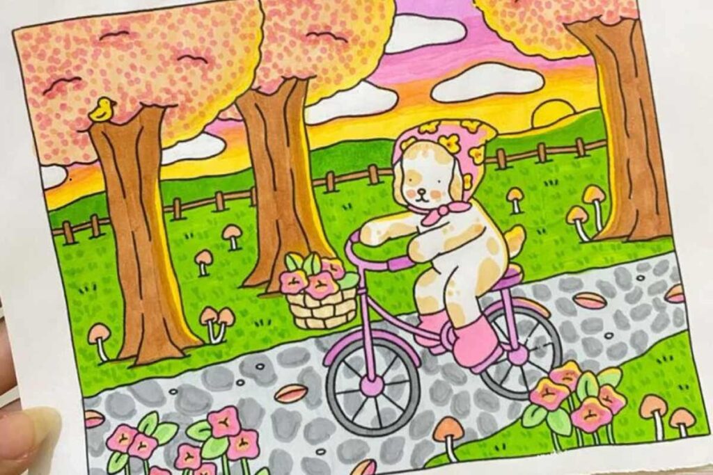 Ao colorir, pense no sentimento que deseja expressar. Quer uma cena alegre e vibrante? Aposte em cores contrastantes. Busca algo delicado e calmo? Prefira tons neutros e degradês suaves.