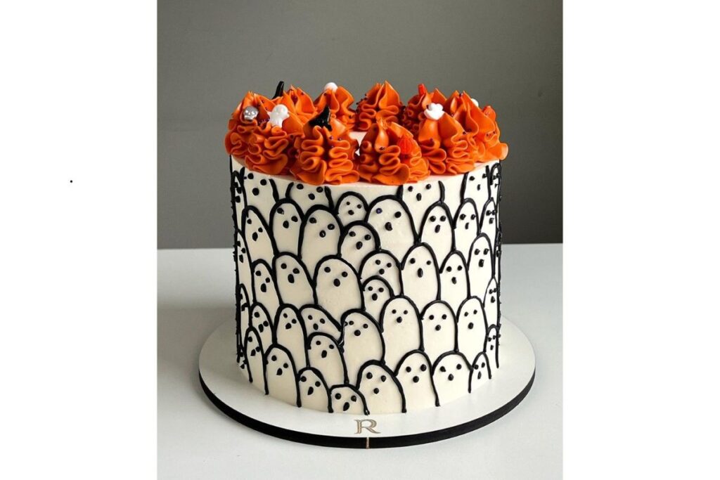 6. Bolo de fantasmas e chantilly laranja