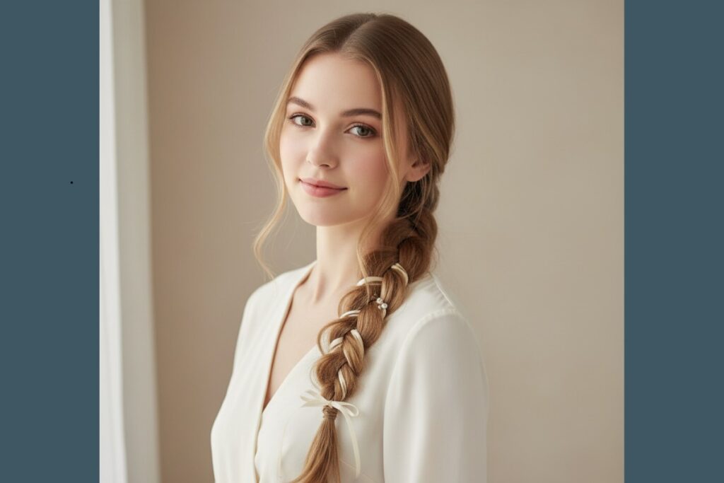 Romântica e fácil de fazer, a trança lateral é perfeita para compromissos rápidos ou para o dia a dia. Combine com acessórios delicados para dar um toque moderno.