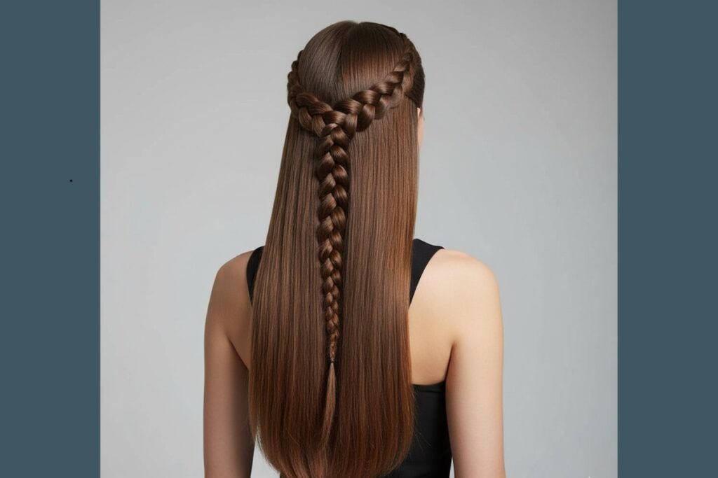 Tendência em 2025, esse penteado mistura duas tranças embutidas que se encontram no topo da cabeça, formando um visual moderno e cheio de estilo.