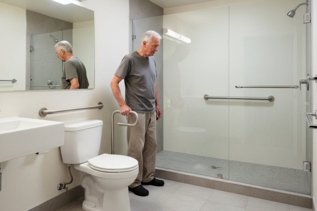 As barras de apoio são fundamentais na área do banho e perto do vaso sanitário. Elas reduzem o risco de quedas, ajudam no equilíbrio e garantem mais firmeza ao sentar e levantar.