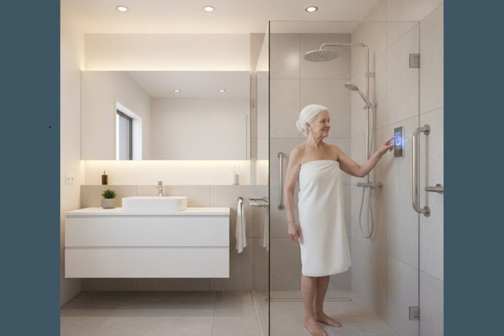 Chuveiros com controle de temperatura evitam oscilações bruscas e reduzem o risco de queimaduras. O idoso não precisa ajustar manualmente a água repetidas vezes, o que previne esforço excessivo e melhora o conforto.