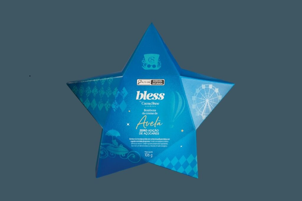 A Estrela Bless reúne bombons com chocolate ao leite zero adição de açúcares e recheio de avelã, criando uma combinação equilibrada, com suavidade e intensidade na medida certa.