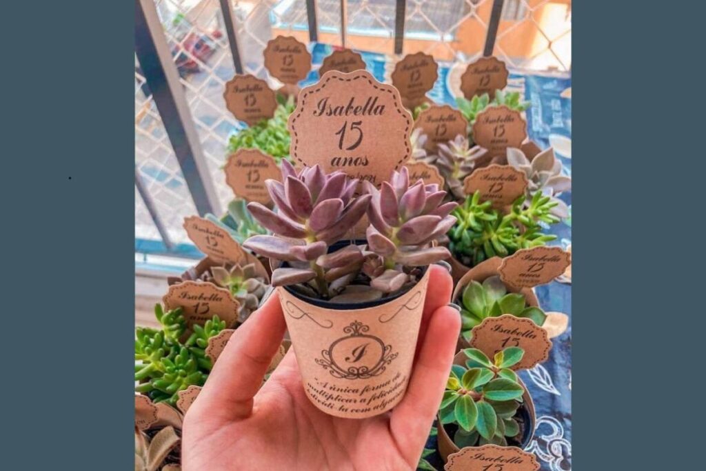 É uma opção perfeita para aniversários de 15 anos, festas adultas e eventos ao ar livre. A suculenta simboliza vida, cuidado e crescimento, uma mensagem linda para transmitir aos convidados.