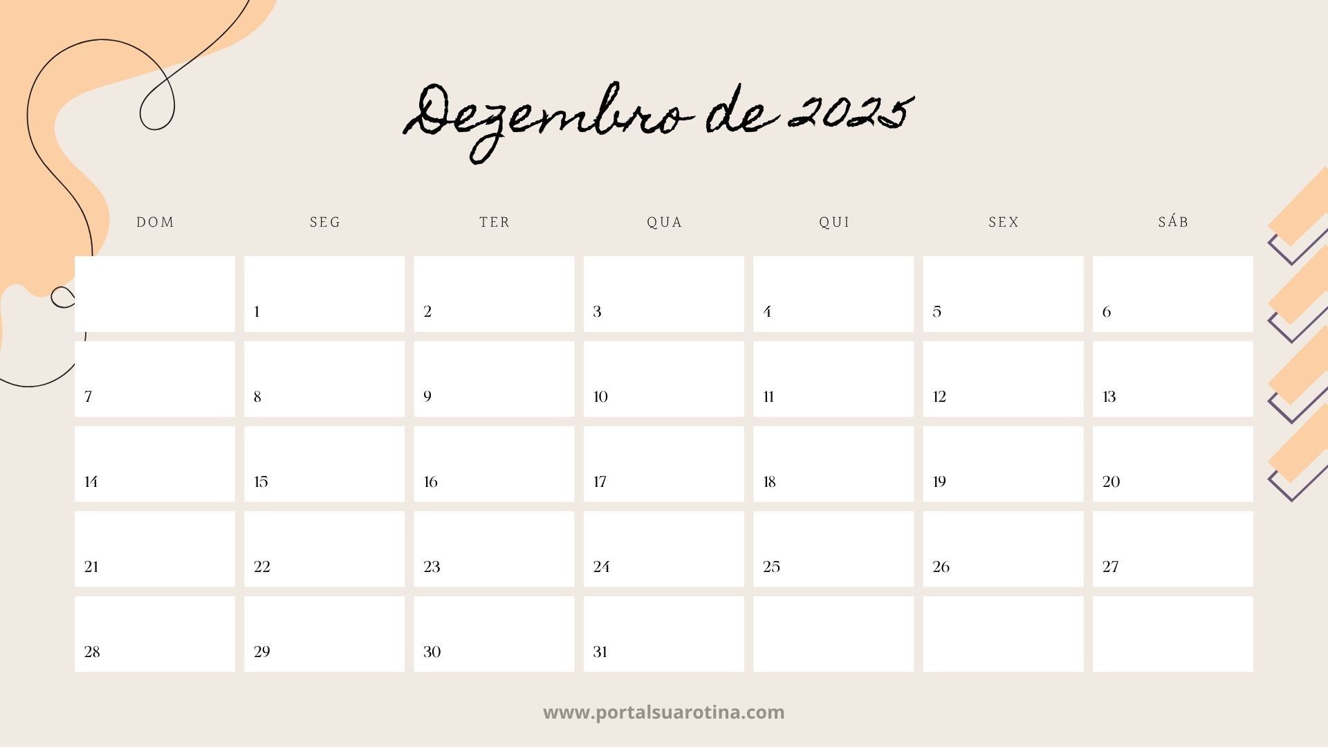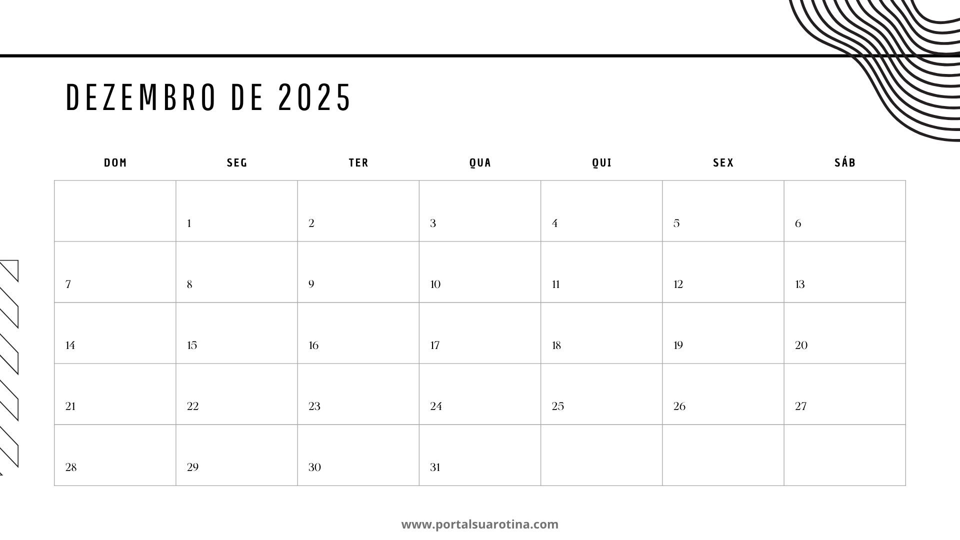 Calendário dezembro 2025 decorativo para parede