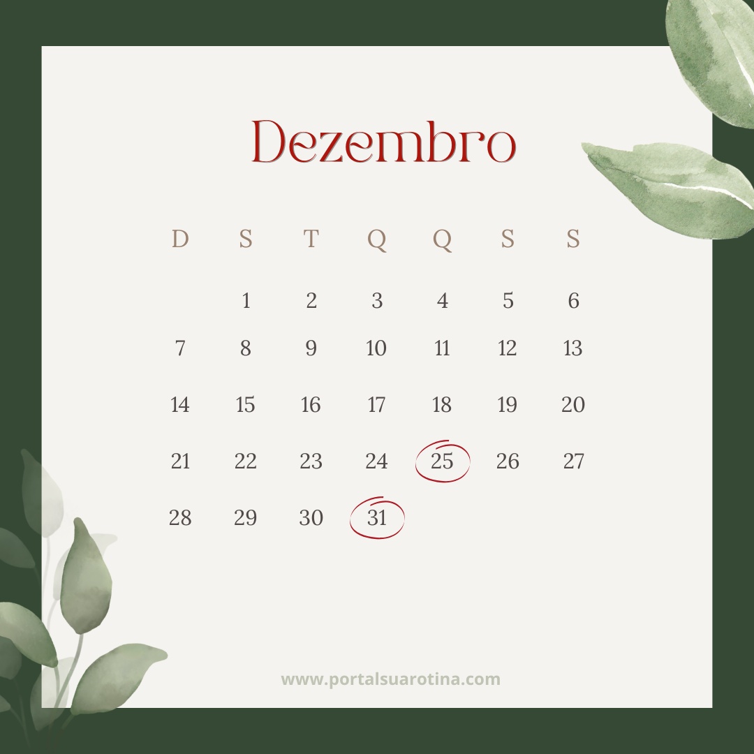 Um bom calendário precisa incluir feriados e dias de destaque. Em dezembro de 2025, os principais são: