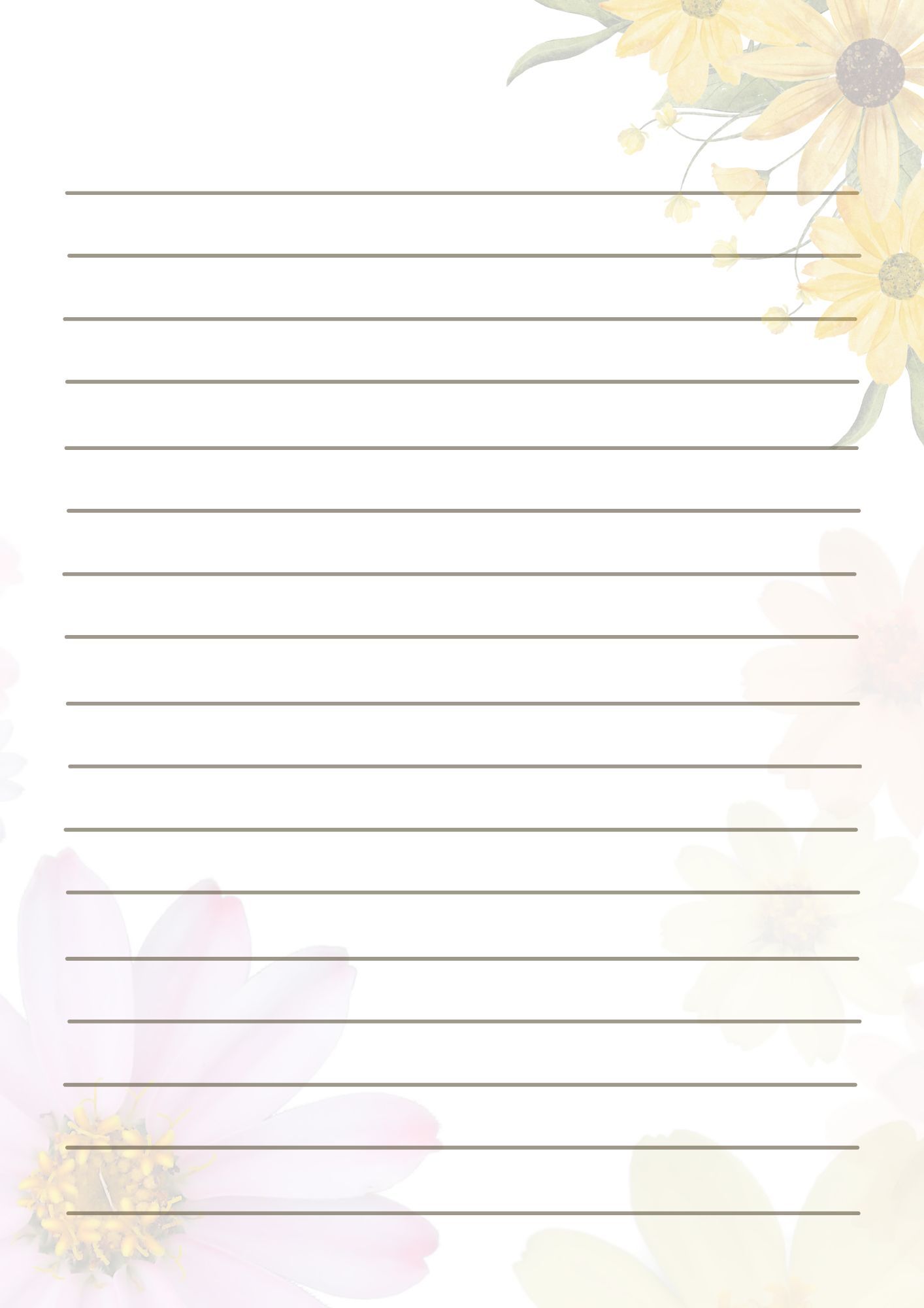 A folha pautada para imprimir serve como apoio visual para a escrita. As linhas ajudam a manter o alinhamento das palavras, o espaçamento correto entre frases e a organização do texto no papel.