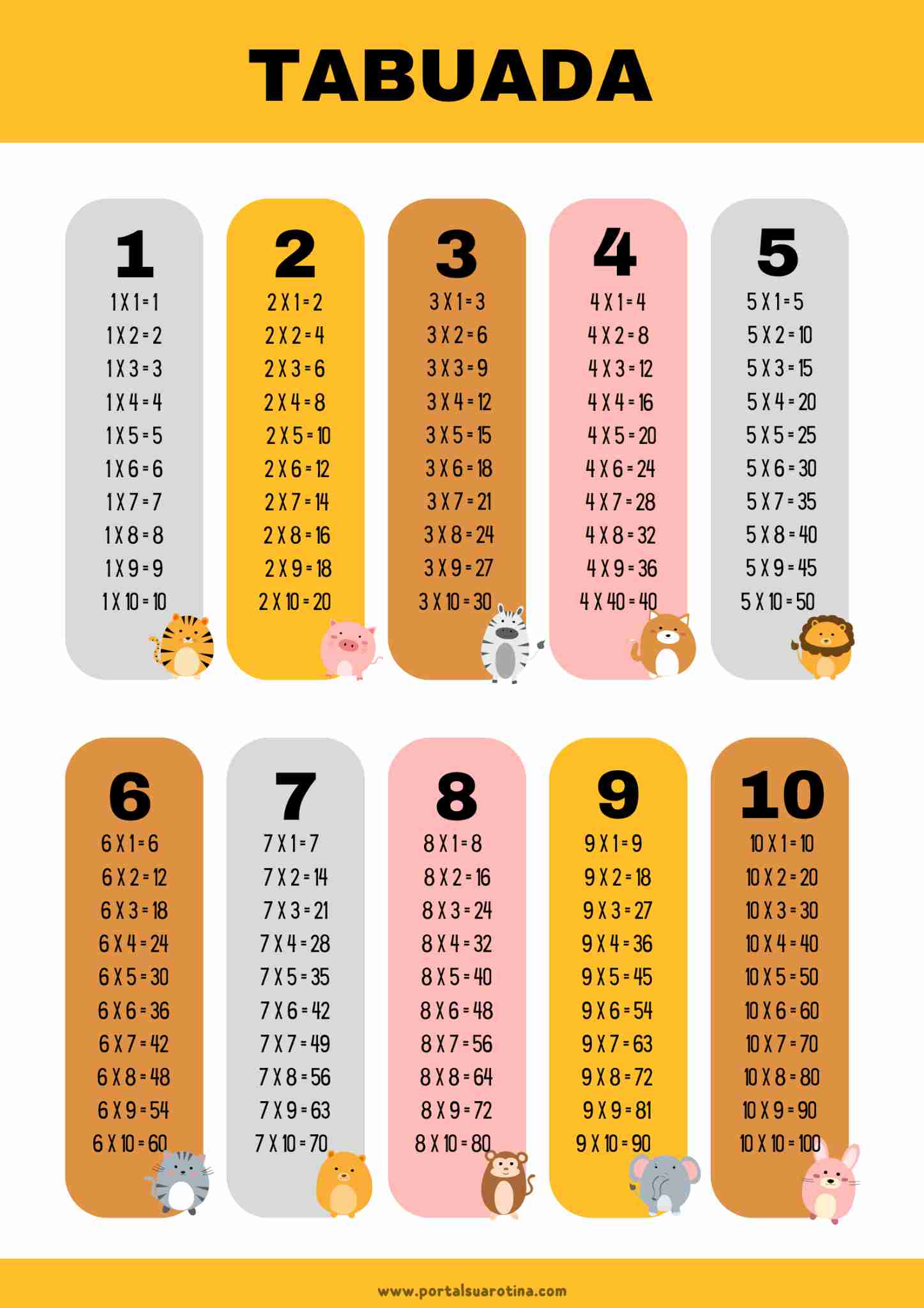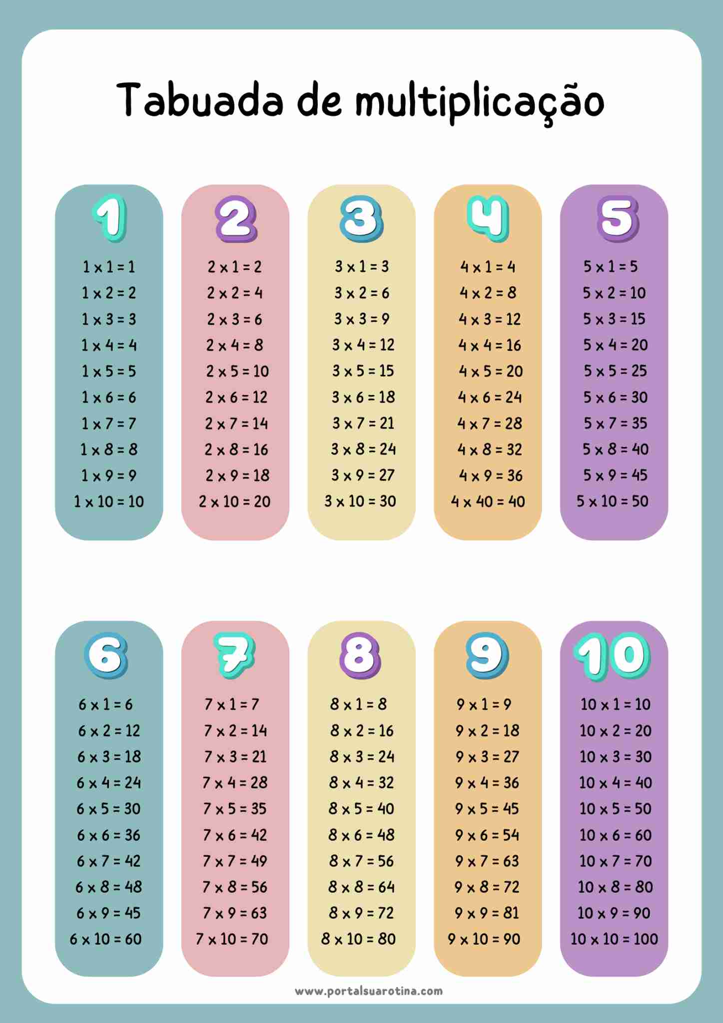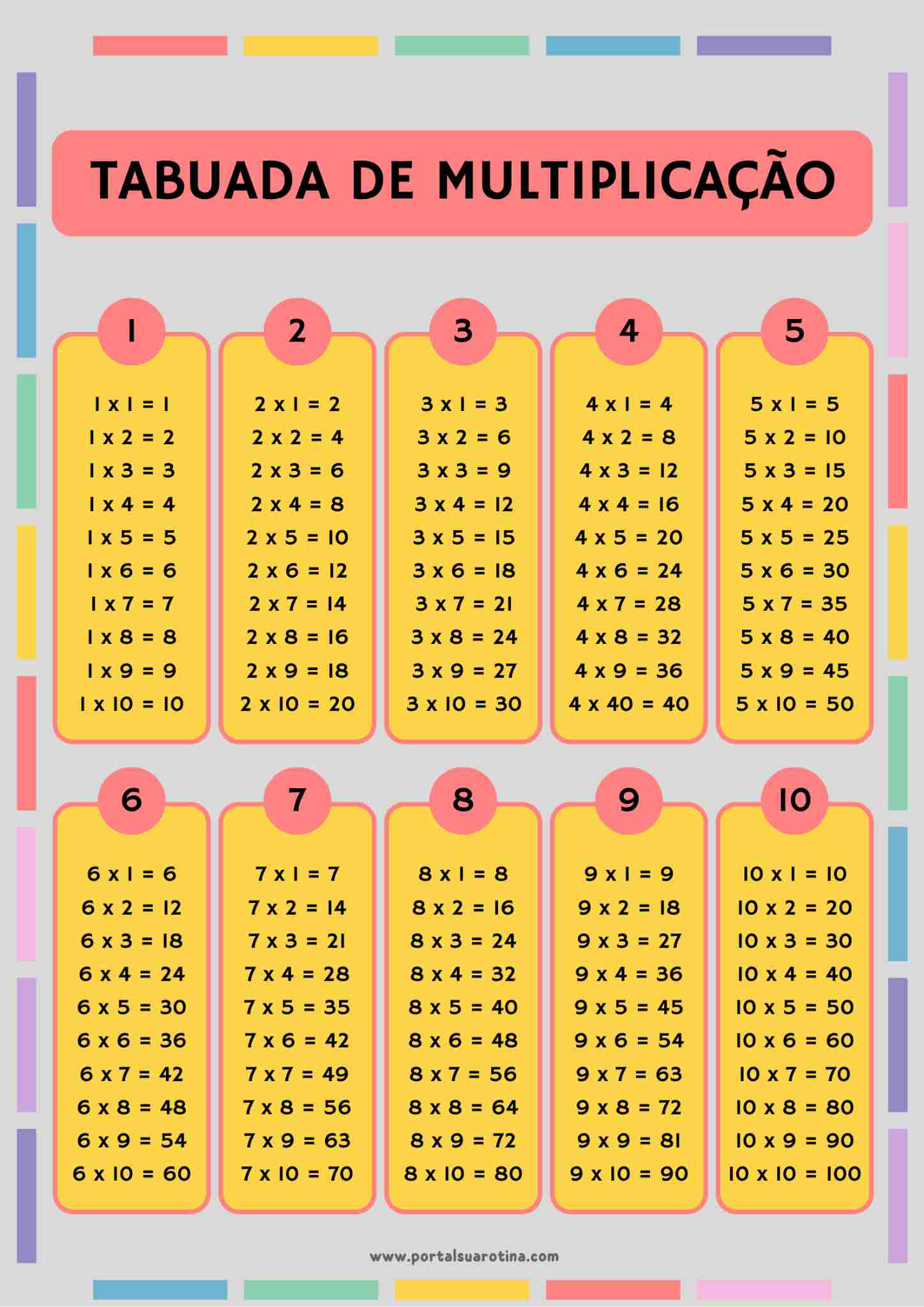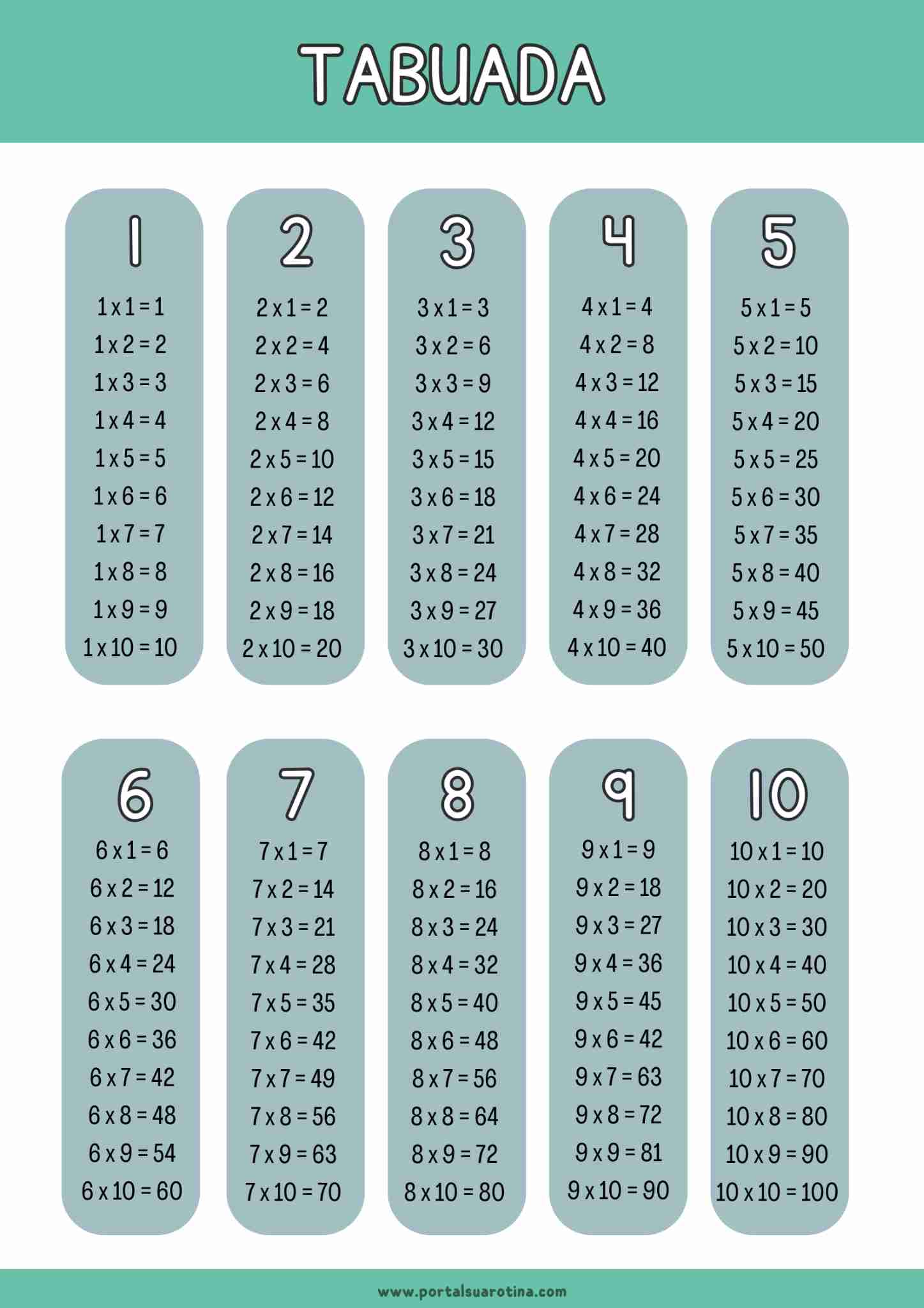 Por isso, ter uma tabuada completa para imprimir em mãos ajuda não só nos estudos, mas em atividades simples do dia a dia.