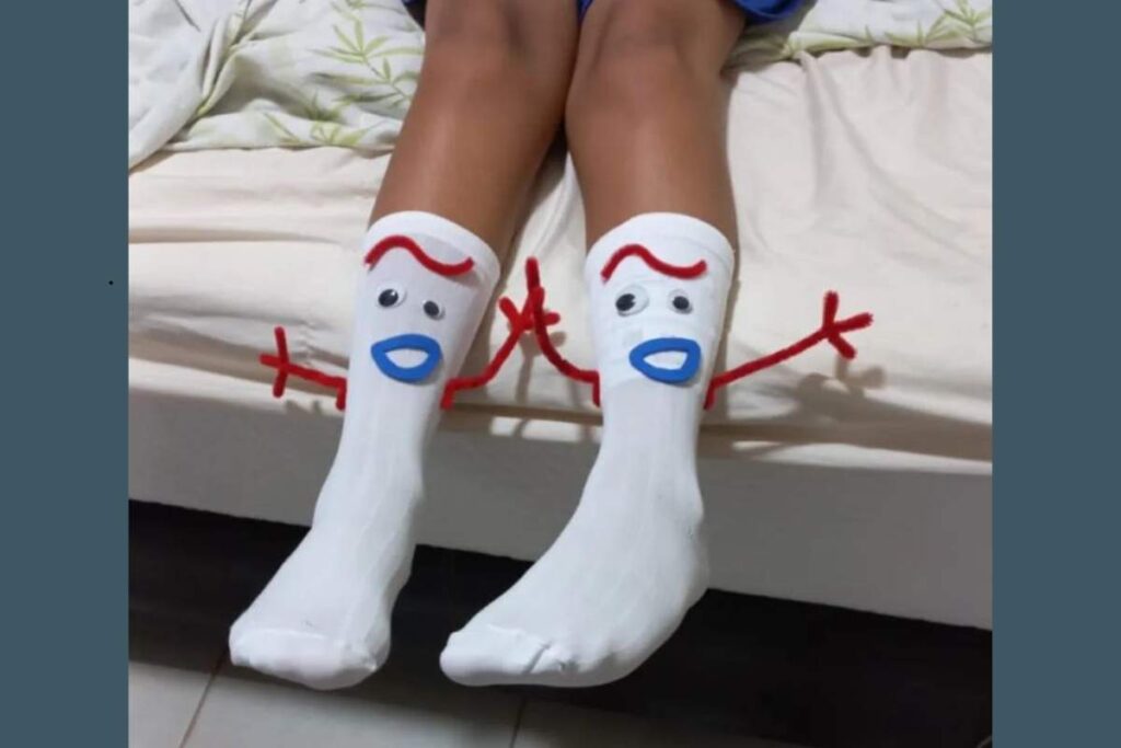 Inspirada no personagem Garfinho, do Toy Story, essa meia maluca infantil é divertida e cheia de personalidade. O rostinho aplicado transforma a meia em um personagem, despertando a imaginação e arrancando risadas.