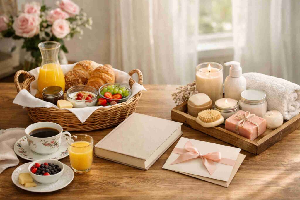 Prepare o prato favorito dela, organize a mesa com cuidado e assuma a cozinha do início ao fim. Se possível, inclua uma sobremesa especial e um bilhete simples agradecendo por tudo.